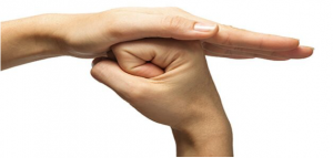 Pulgares cruzados formando un triángulo